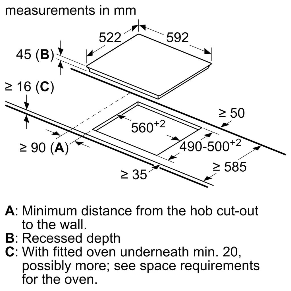Minimum Worktop Thickness: 16 mm
